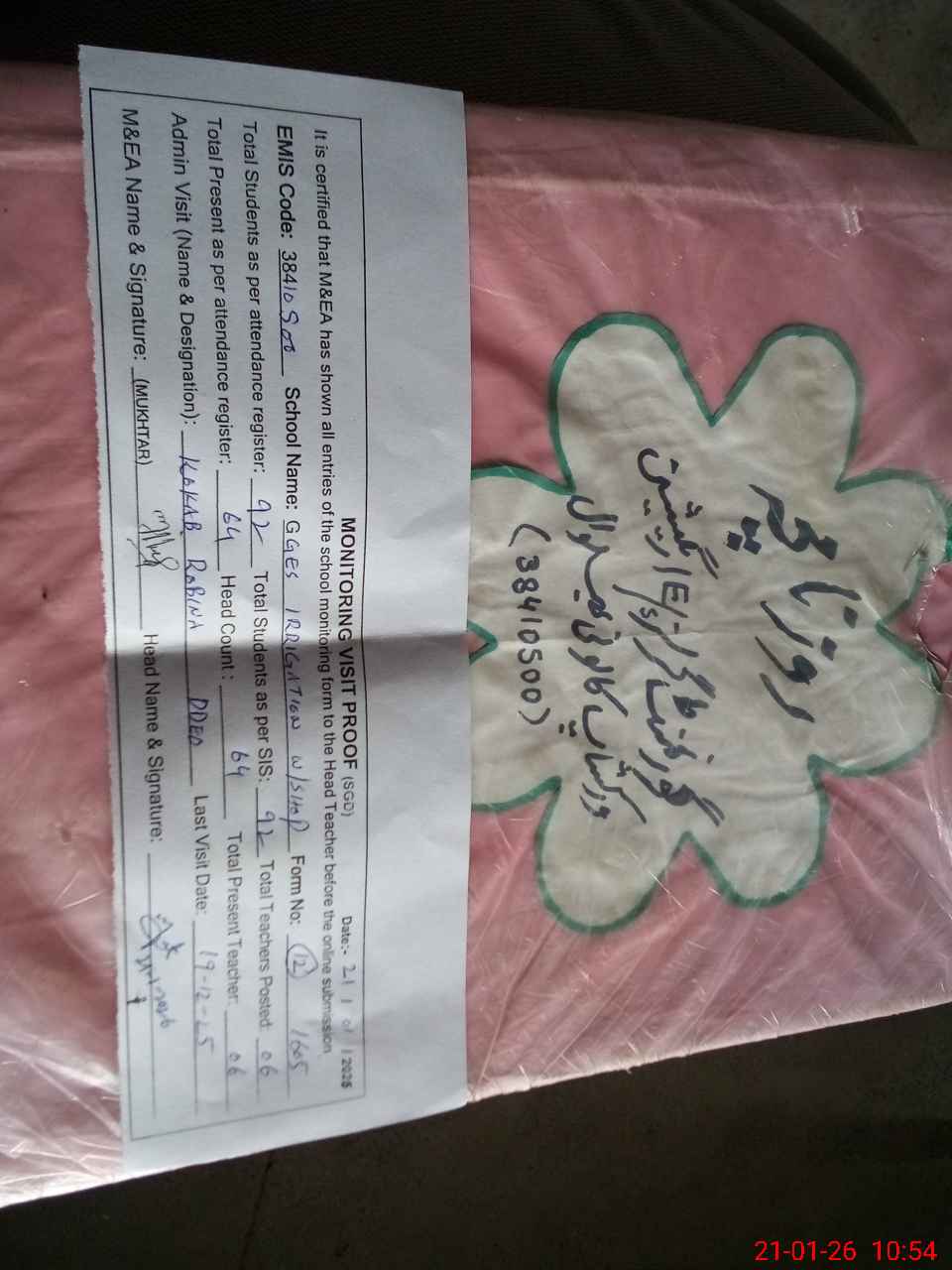 | EMIS Code: 38410500 | Name of School: GGES IRRIGATION WORKSHOP COLONY BHALWAL | |||
