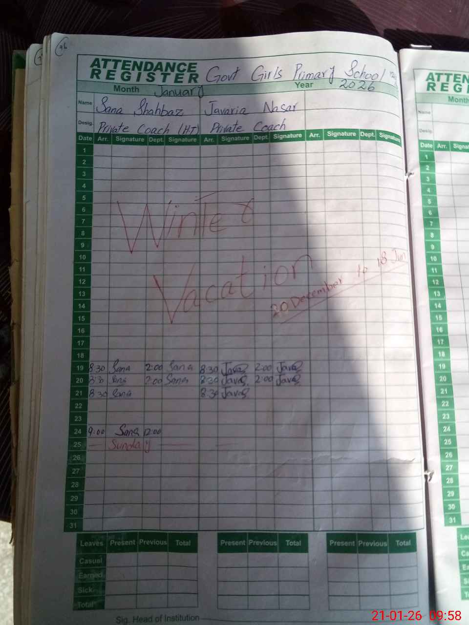 | Remarks (Use Separate Page if Required): said school running without appointed regular teachers sine last one years school running only by appointed 02 privateer teachers Moreover NSB and FTF registers and data not provided to MEA by private teachers Even than they don't know how to maintain data on NSB and FTF registers also official admin visit of the said school not carried out from last 08 months Necessary action may please be taken strictly | |||||
