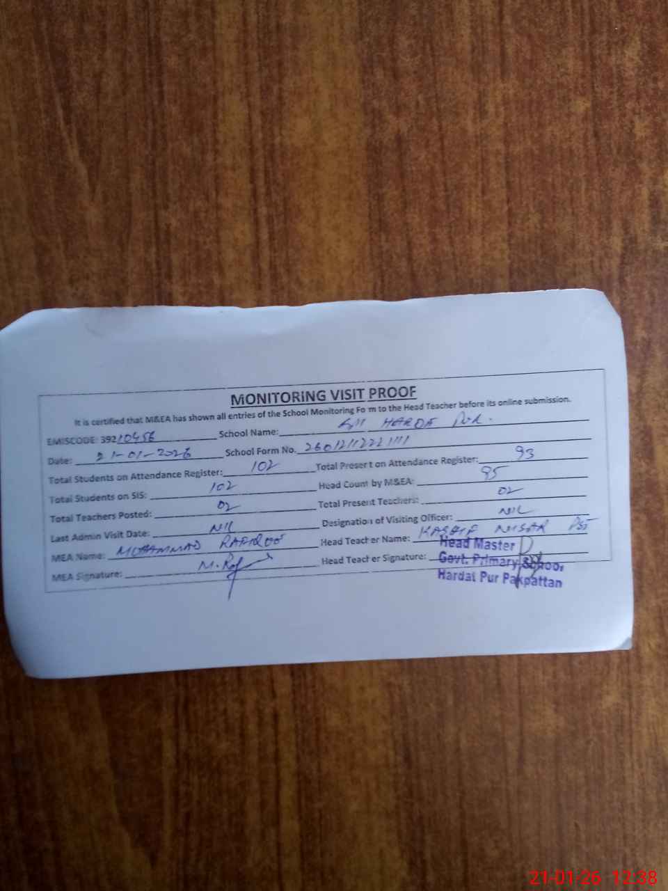 | EMIS Code: 39210456 | Name of School: GPS HARDIT PUR | |||