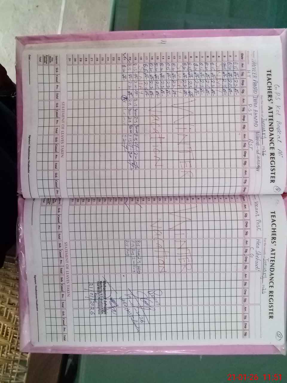 | 36**** | Ir**** Ah**** | PST Science/Maths | Regular | 2 | 0 | 0 | 0 | 0 | 0 | 0 | 0 | 2 | Absent (Un-Authorized) |