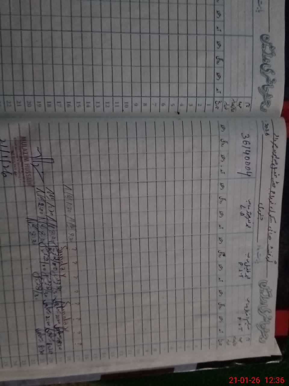 | CNIC | Full Name | Designation | R/C | Absence During Last Calender Month |