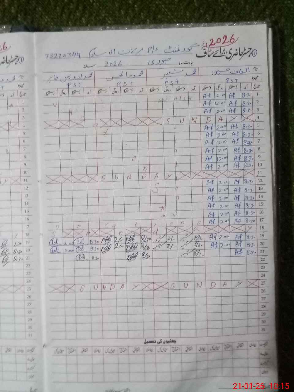 | Name: AL**** HU**** Designation: (School Headmaster's/Headmistress's) PST Phone/Cell Number: 03**** |