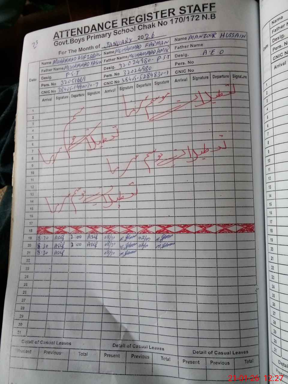 | Name: Mu**** As**** Iq**** Designation: (School Headmaster's/Headmistress's) PST Phone/Cell Number: 03**** |