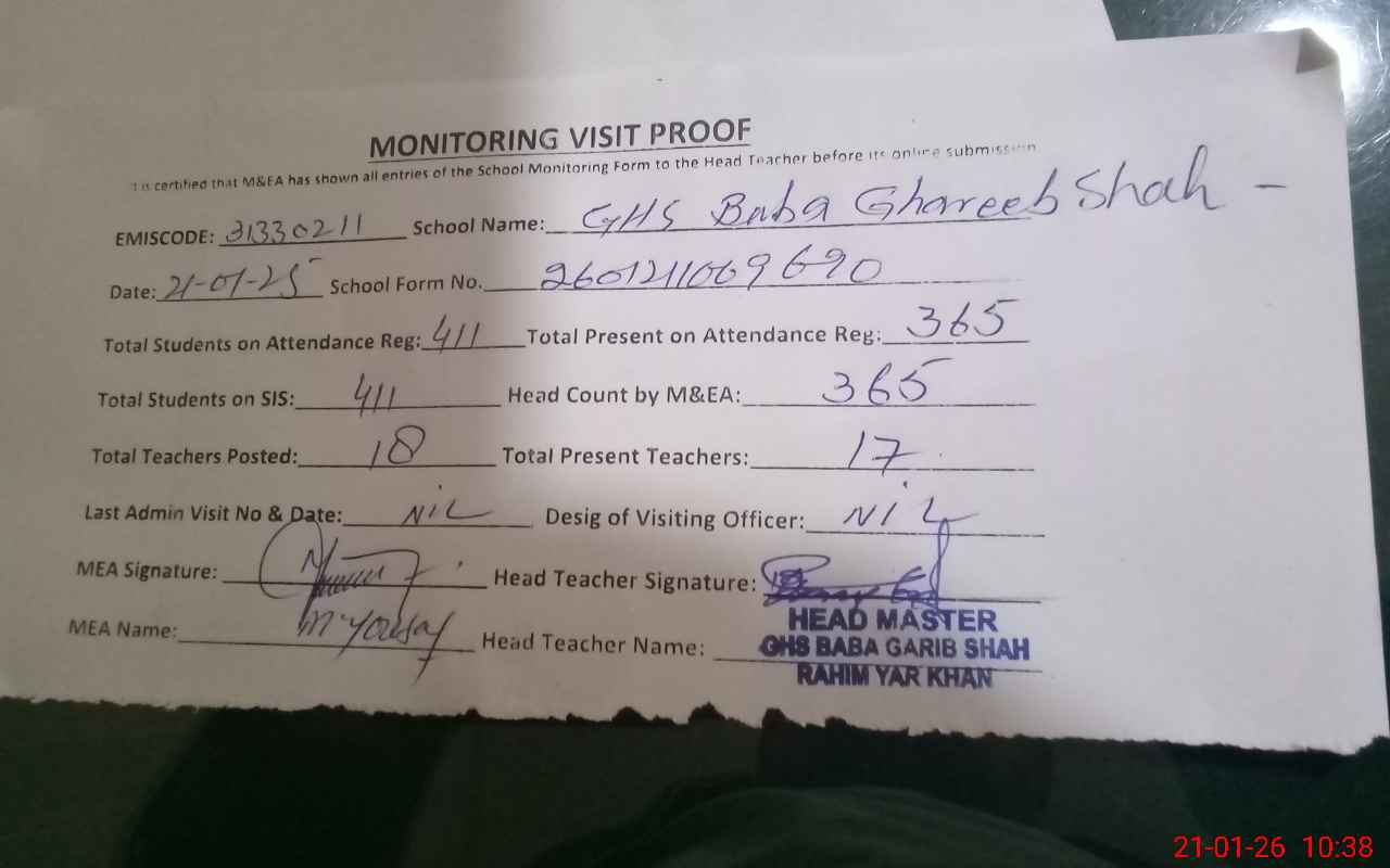 | EMIS Code: 31330211 | Name of School: GHS BABA GHARIB SHAH | |||