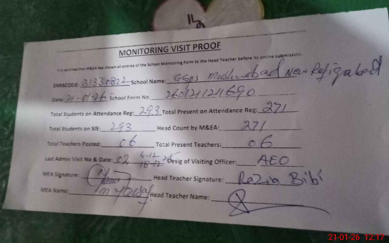 | EMIS Code: 31330822 | Name of School: GGPS MUSLIM ABAD NEW RAFEEQ ABAD | |||