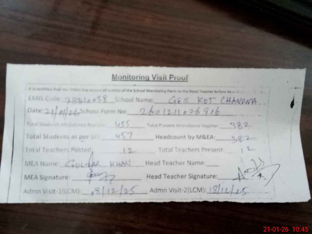 | EMIS Code: 38310038 | Name of School: GES KOT CHANDNA | |||