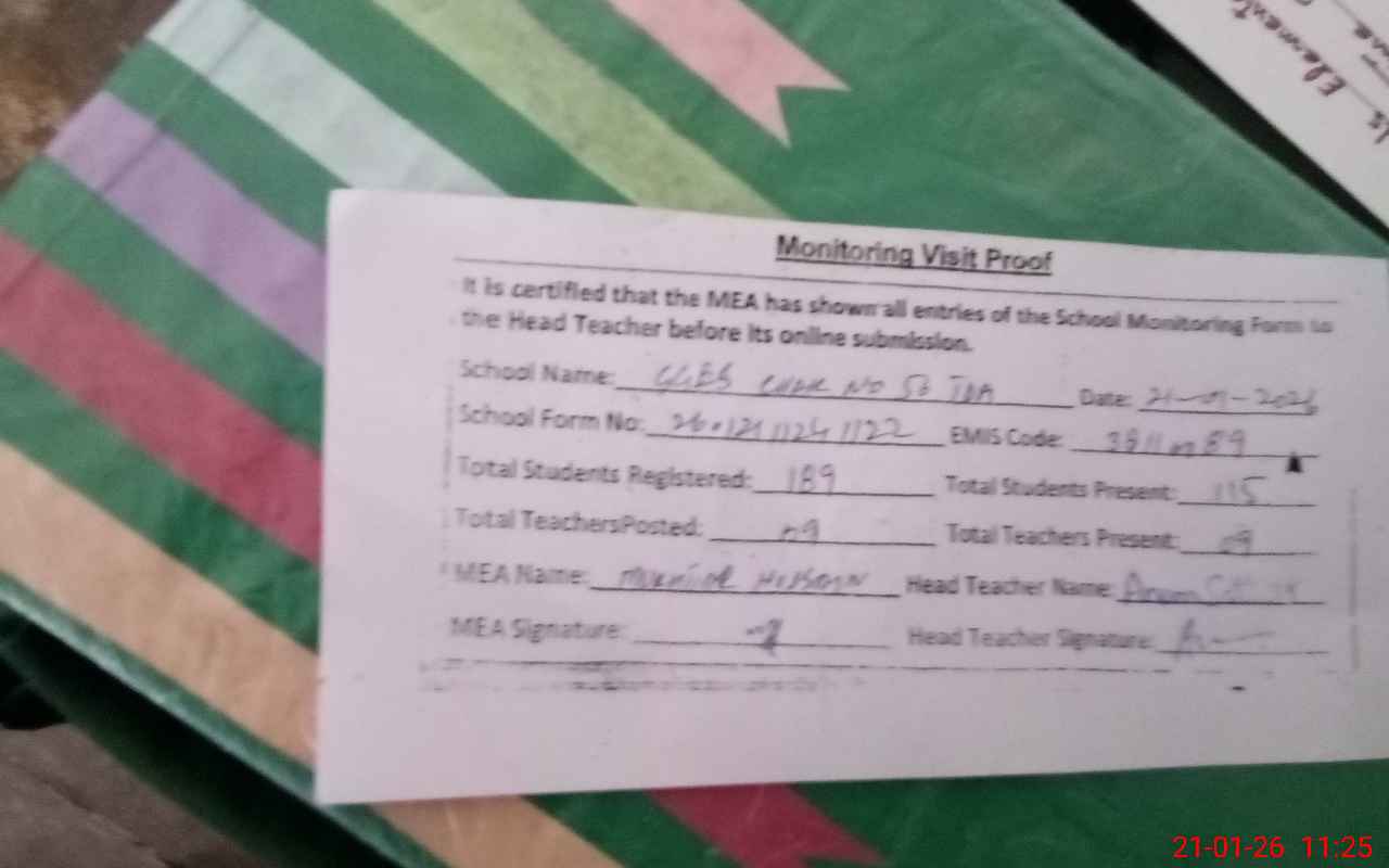 | Attendance Register | Head Teacher | MEA with School | Visit Proof |