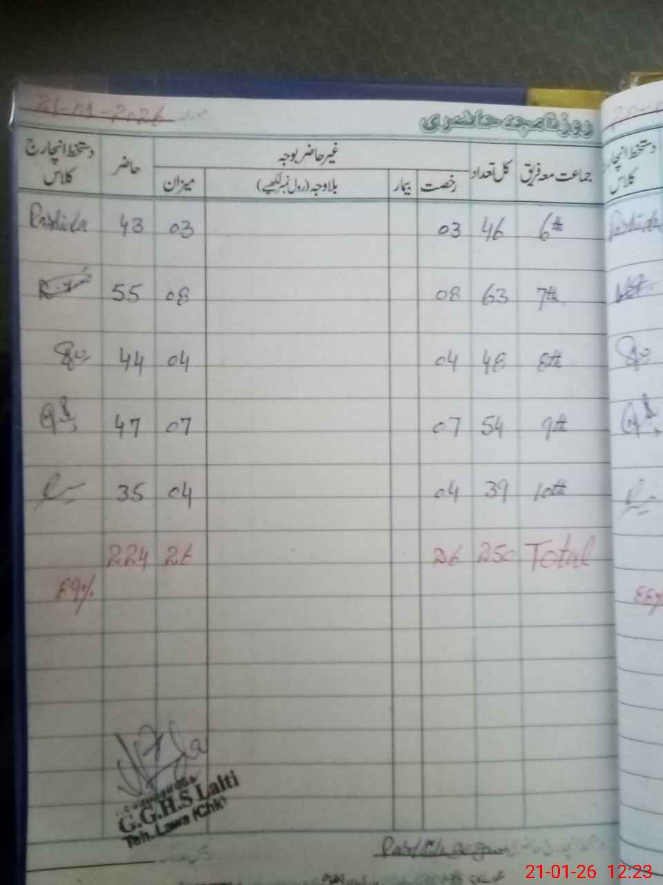 | Total Students Present | 0 | 0 | 0 | 0 | 0 | 0 | 0 | 43 | 55 | 44 | 47 | 35 | 224 | |||