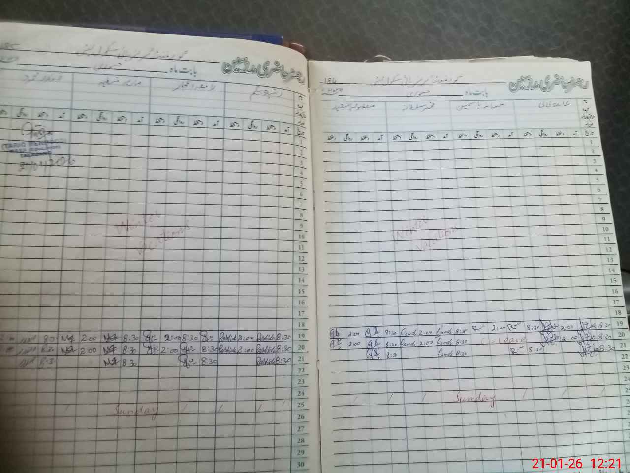 | CNIC | Full Name | Designation | R/C | Absence During Last Calender Month |