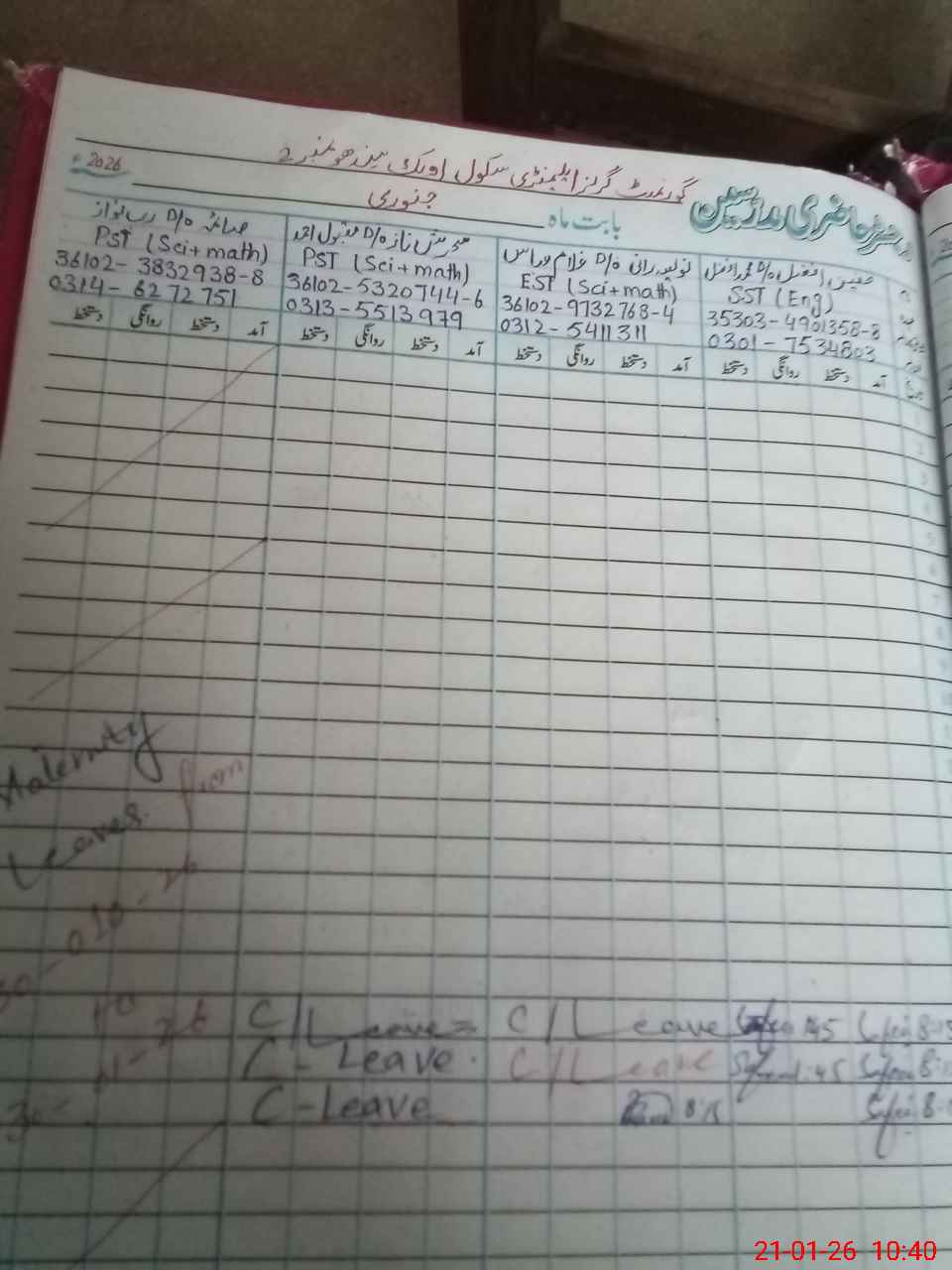 | 36**** | Sa**** | PST Science/Maths | Regular | 31 | 0 | 0 | 31 | 0 | 0 | 0 | 0 | 0 | Maternity |