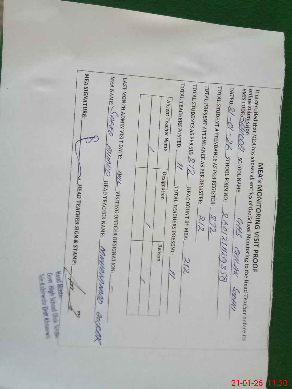 | EMIS Code: 36410061 | Name of School: GHS AULAK SINDHU, SARAI SIDHU | |||
