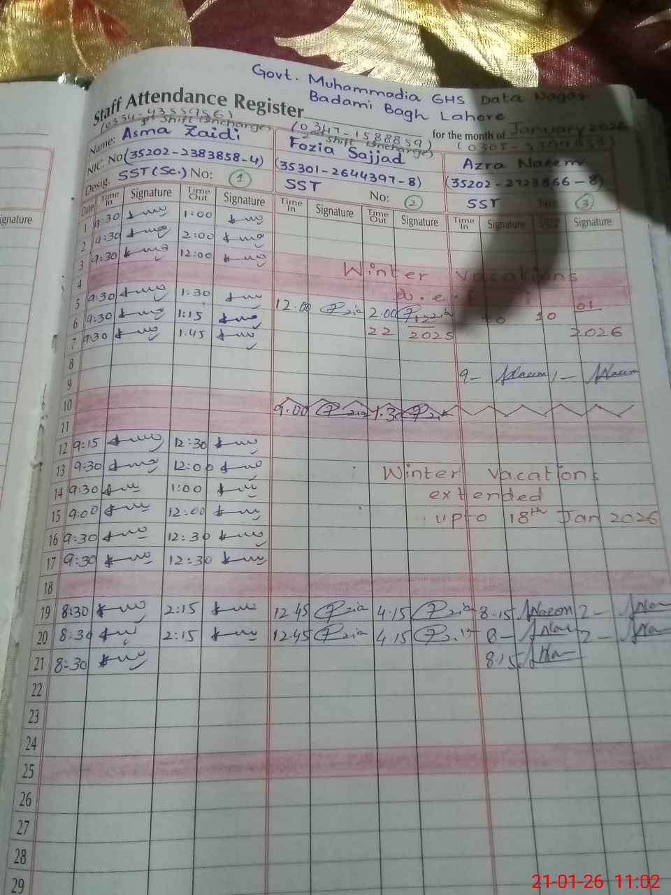 | Name: AS**** ZA**** Designation: (School Headmaster's/Headmistress's) SST INCHARGE Phone/Cell Number: 03**** |