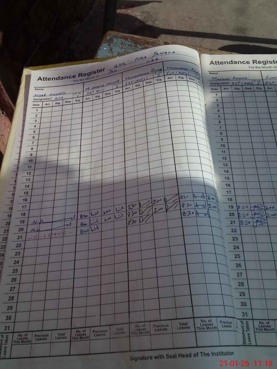 | 37**** | Ni**** Ah**** | HEADMASTER | Regular | 0 | 0 | 0 | 0 | 0 | 0 | 0 | 0 | 0 | Absent (Un-Authorized) |