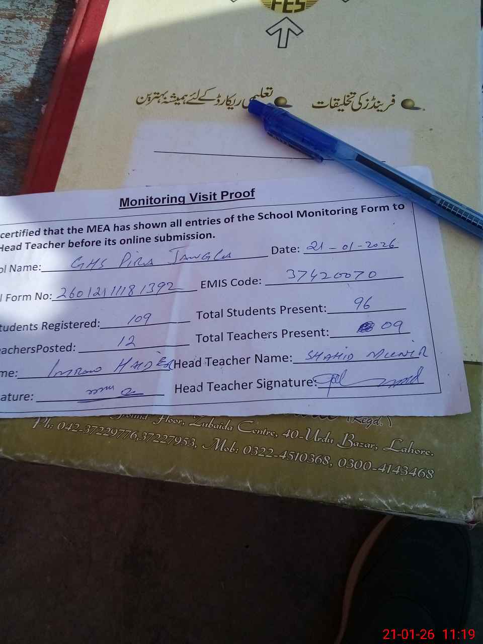| EMIS Code: 37420070 | Name of School: GHS PIRA JANGLA | |||