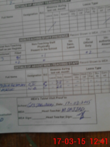 | Attendance Register | Head Teacher | MEA with School | Visit Proof |