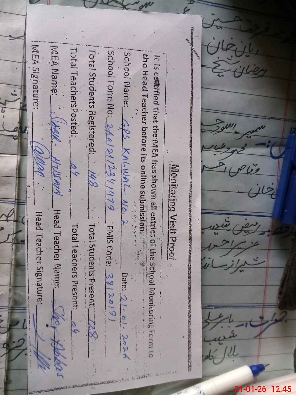 | EMIS Code: 38120191 | Name of School: GPS KALWAL NO. 2 | |||