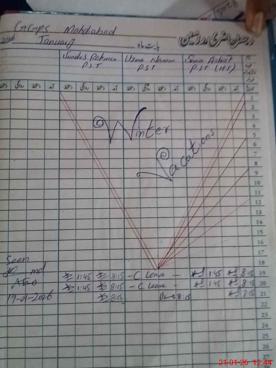| Leave | Duty | Absent | Maternity | Medical | Ex- Pak |