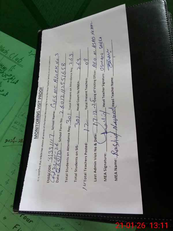 | Certified that this School was Inspected by the Undersigned MEA/DMO Today and the Information Stated Above is as Per Record. | |||||