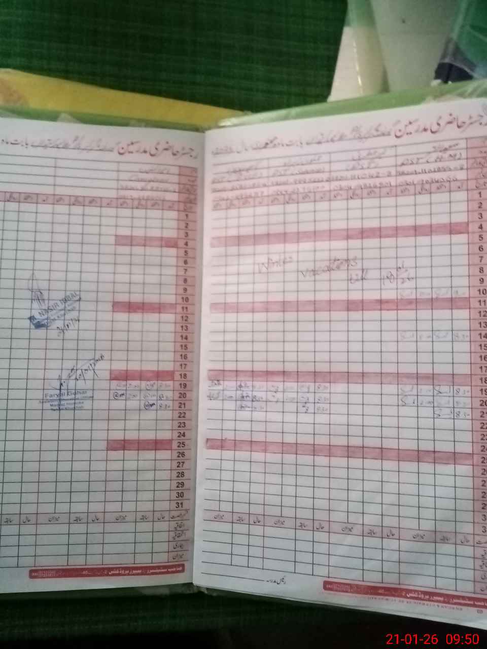 | CNIC | Full Name | Designation | R/C | Absence During Last Calender Month |