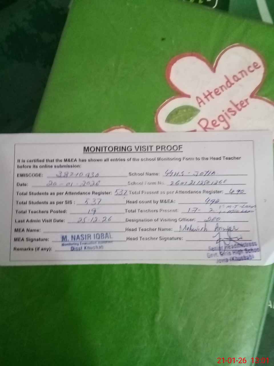 | EMIS Code: 38210930 | Name of School: GGHS JOYIA | |||