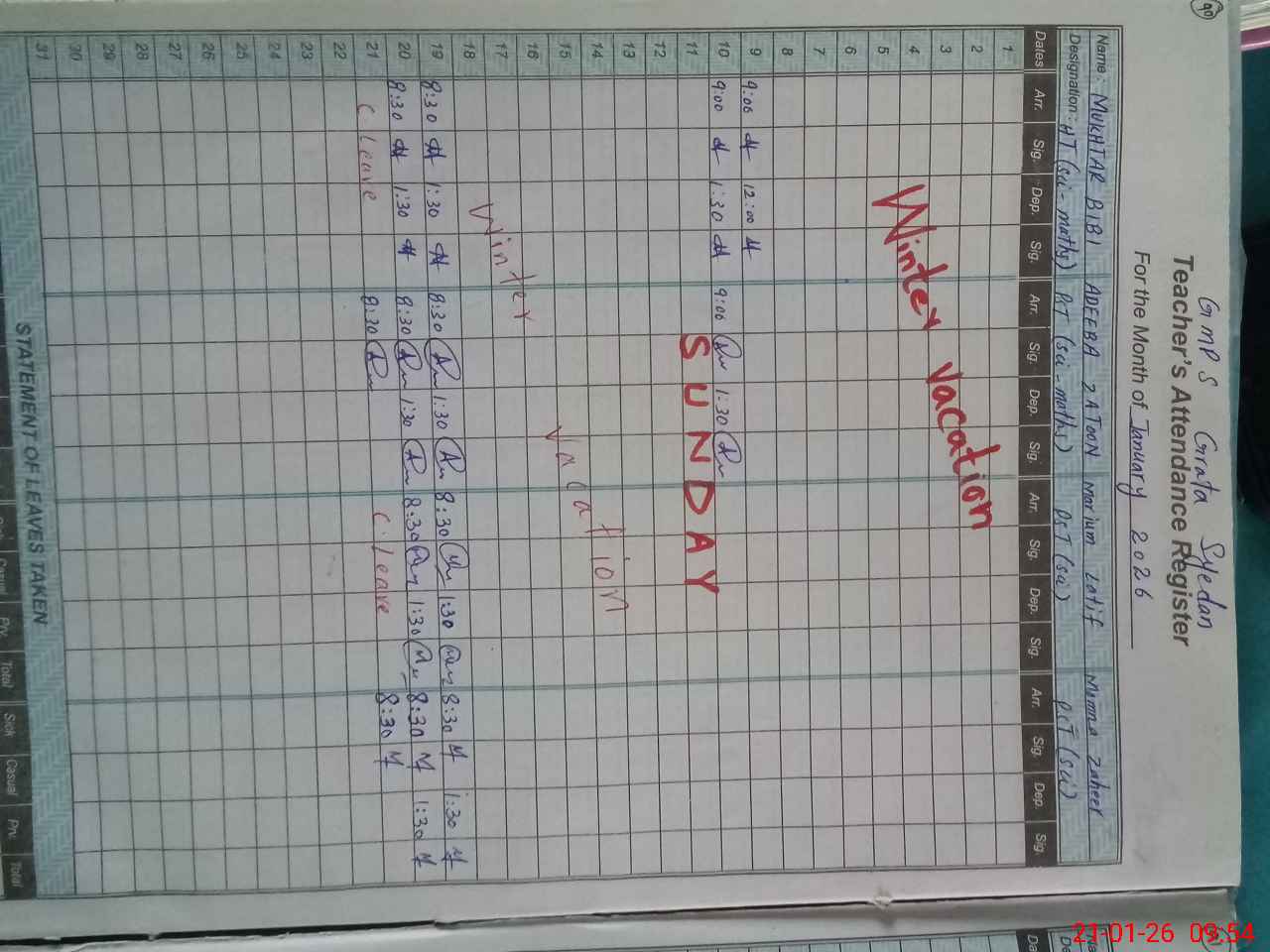 | 37**** | Mu**** Bi**** | PST Science/Maths | Regular | 0 | 0 | 0 | 0 | 0 | 0 | 0 | 0 | 0 | Casual |