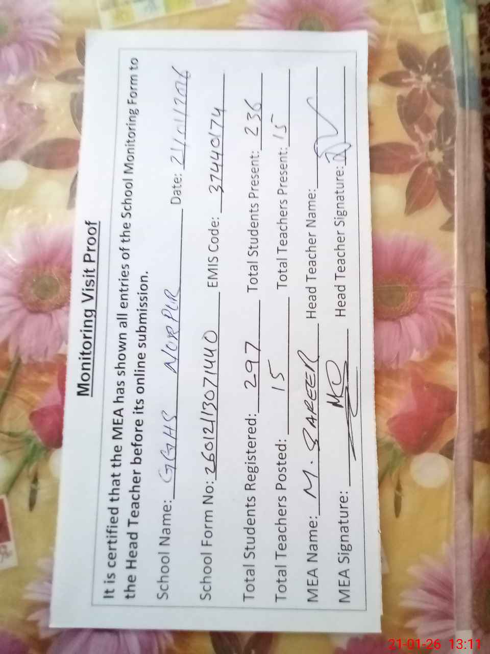 | EMIS Code: 37440174 | Name of School: GGHS NOOR PUR | |||