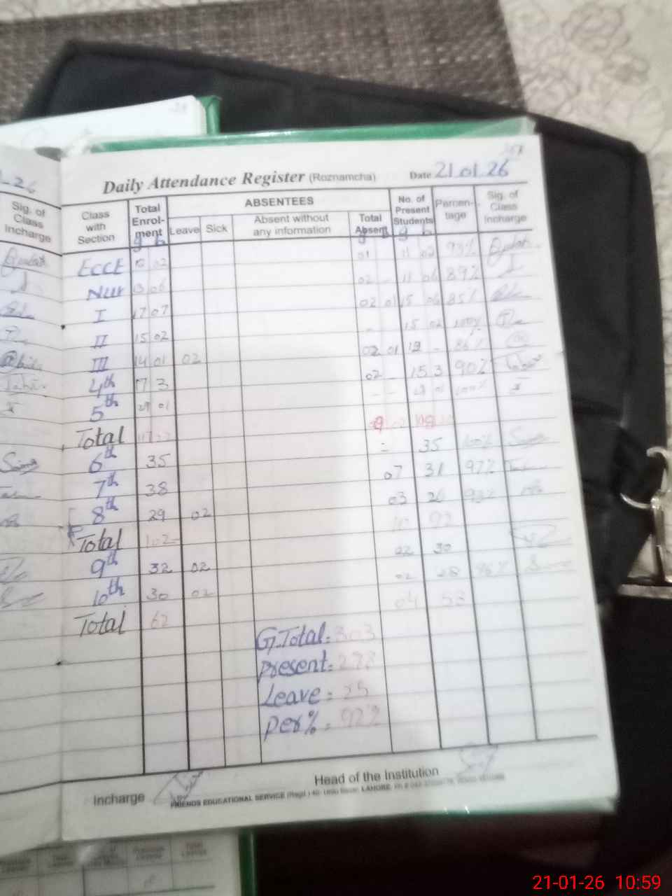 | Attendance | Total | Physically Present | Absent |