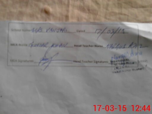| Attendance Register | Head Teacher | MEA with School | Visit Proof |