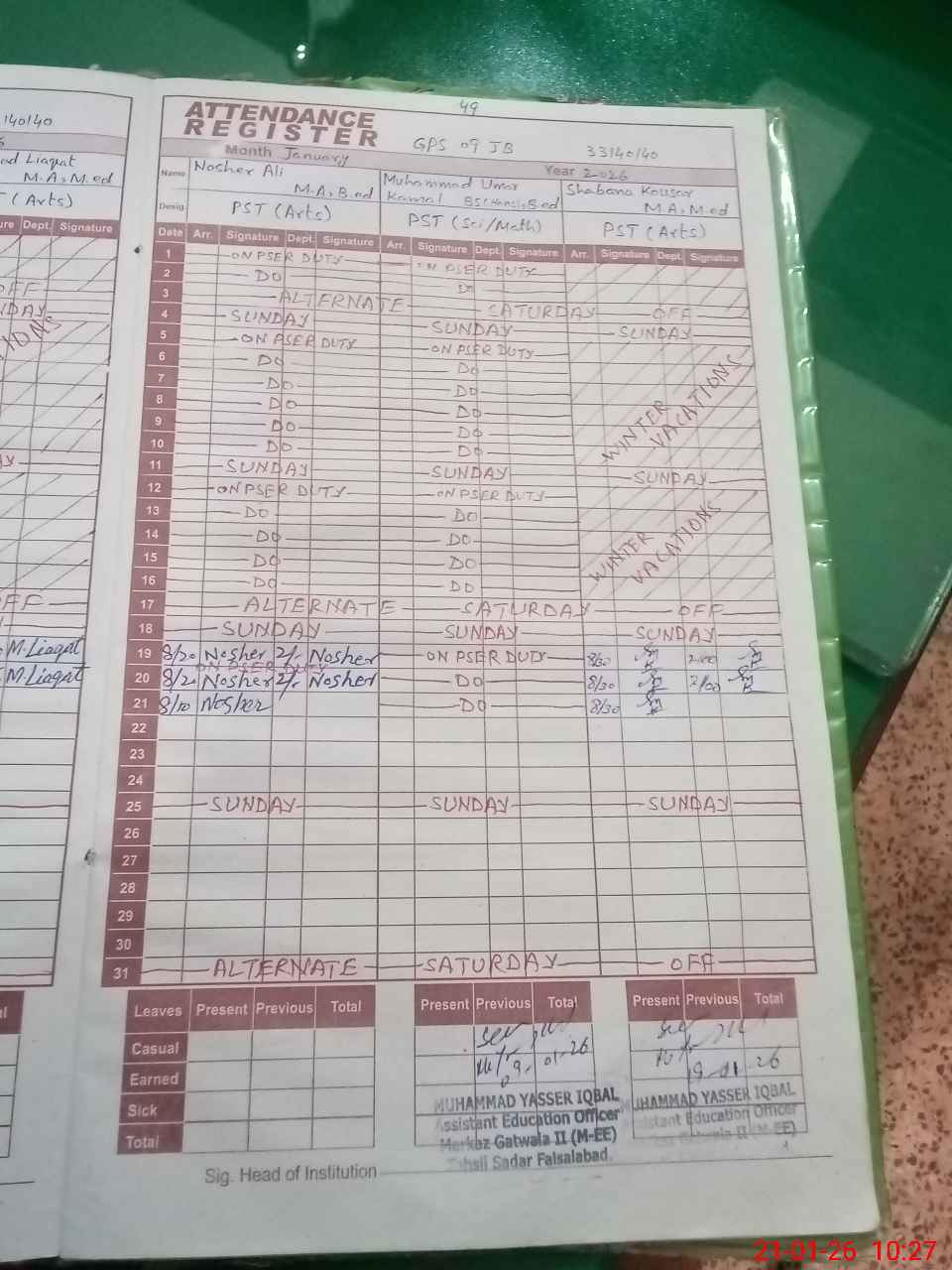| Name: M.As**** As**** Designation: (School Headmaster's/Headmistress's) PST Phone/Cell Number: 03**** |