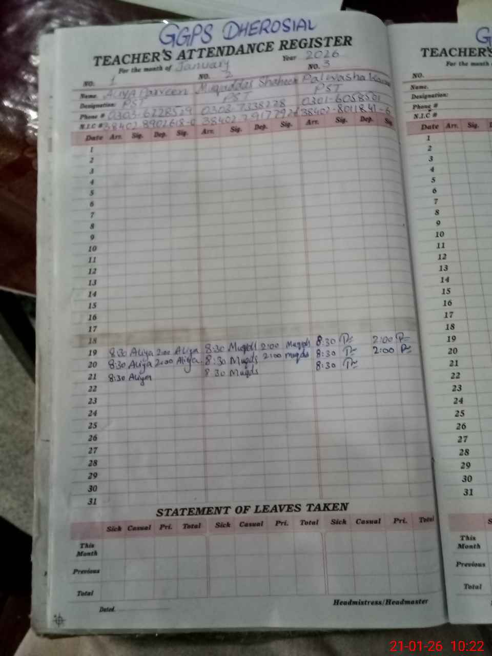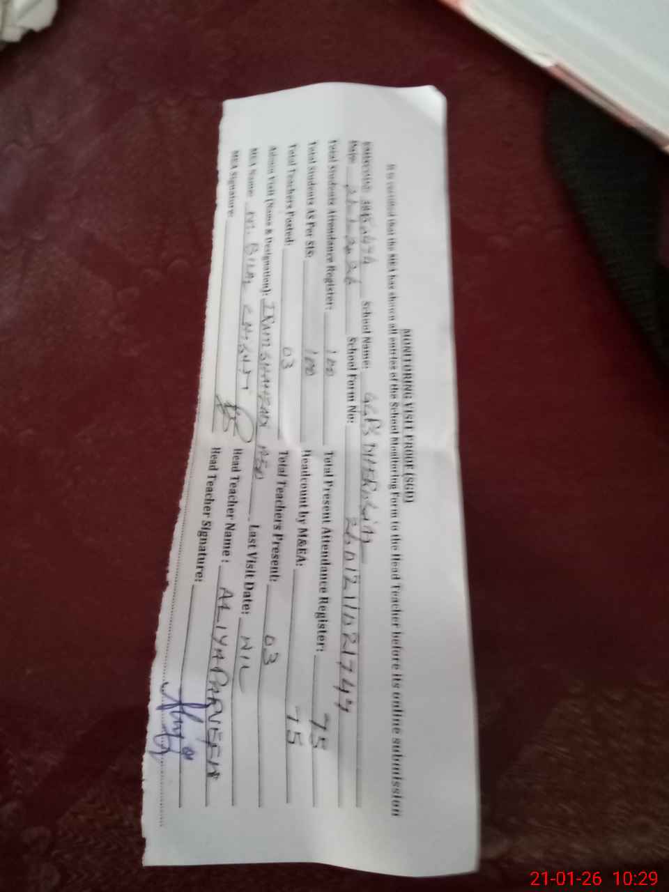| Name: AL**** PA**** Designation: (School Headmaster's/Headmistress's) PTC/JV Phone/Cell Number: 03**** |