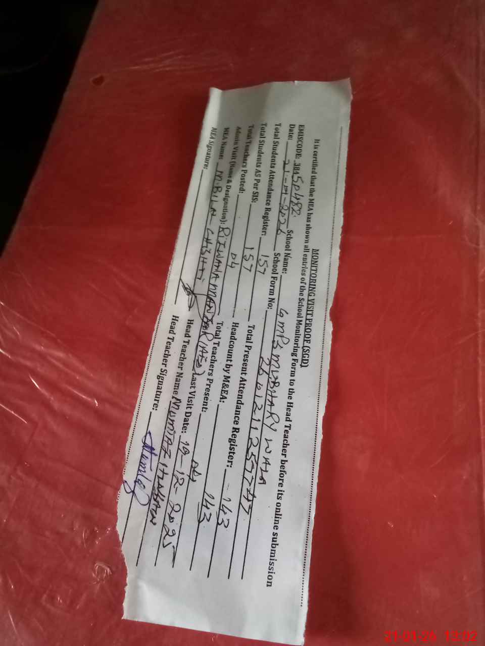 | EMIS Code: 38450482 | Name of School: GMPS MUBARAY WALA | |||
