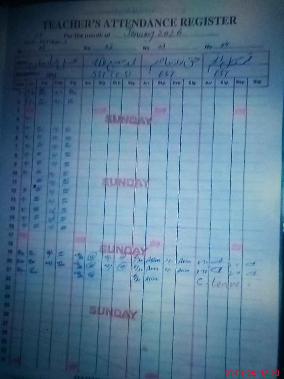 | CNIC | Full Name | Designation | R/C | Absence During Last Calender Month |
