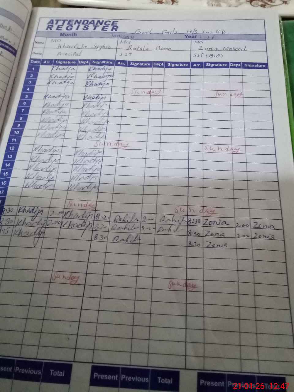 | CNIC | Full Name | Designation | R/C | Absence During Last Calender Month |