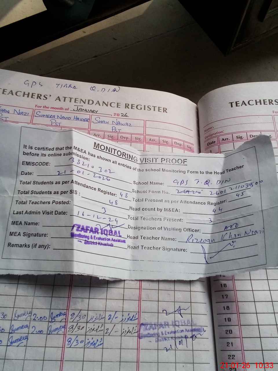 | EMIS Code: 38210302 | Name of School: GPS TIBBA QAIM DIN | |||