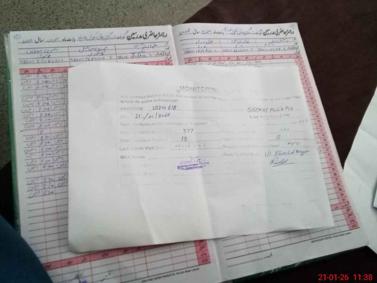 | Remarks (Use Separate Page if Required): last visit AEO 17 Dec 25 Total on register 377 Total on sis 37 2 | |||||