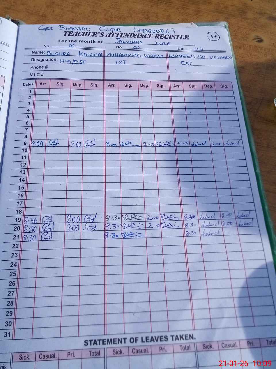 | Name: Bu**** Ka**** Designation: (School Headmaster's/Headmistress's) EST Phone/Cell Number: 03**** |