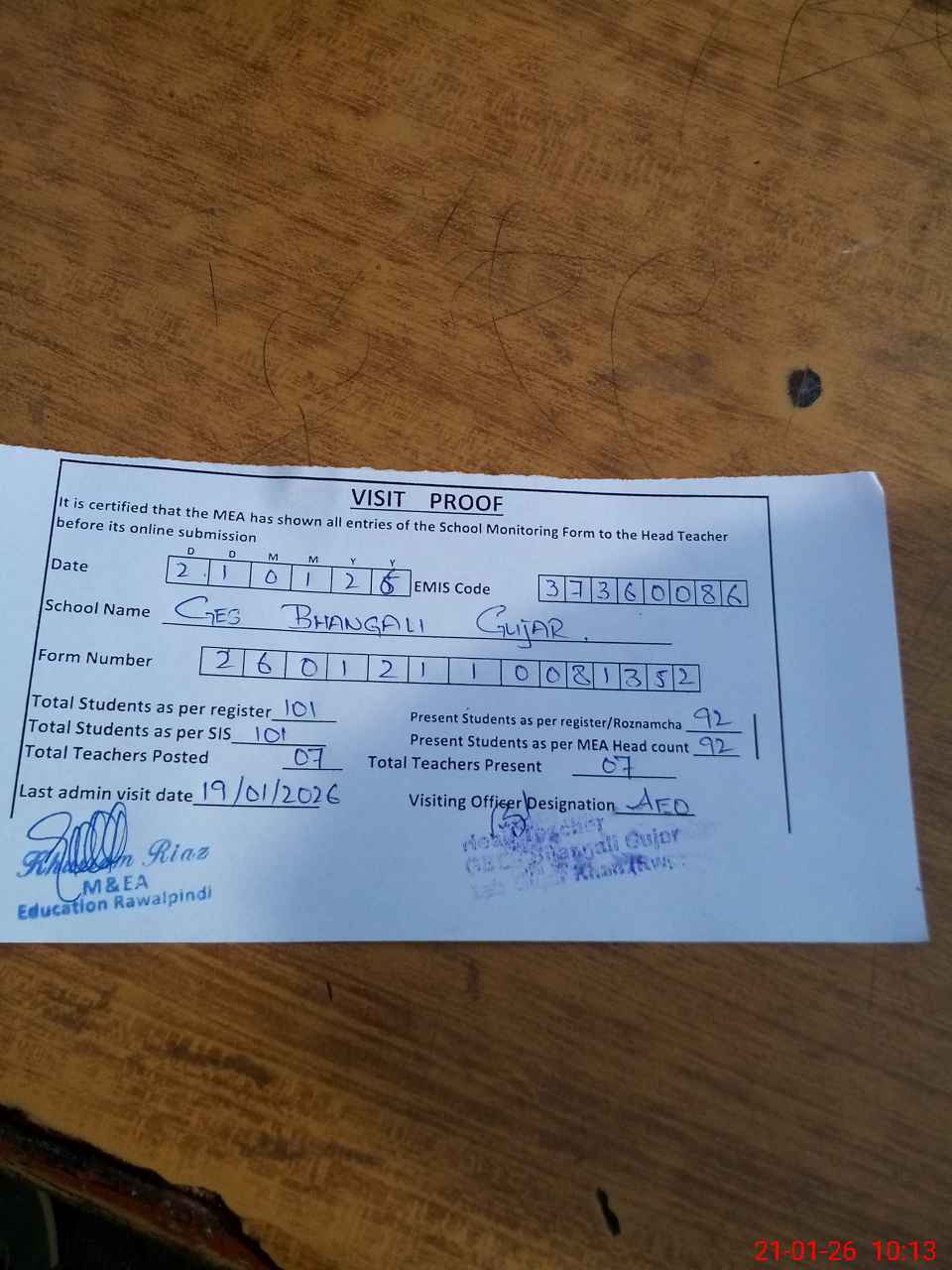 | EMIS Code: 37360086 | Name of School: GES BHANGALI GUJAR | |||