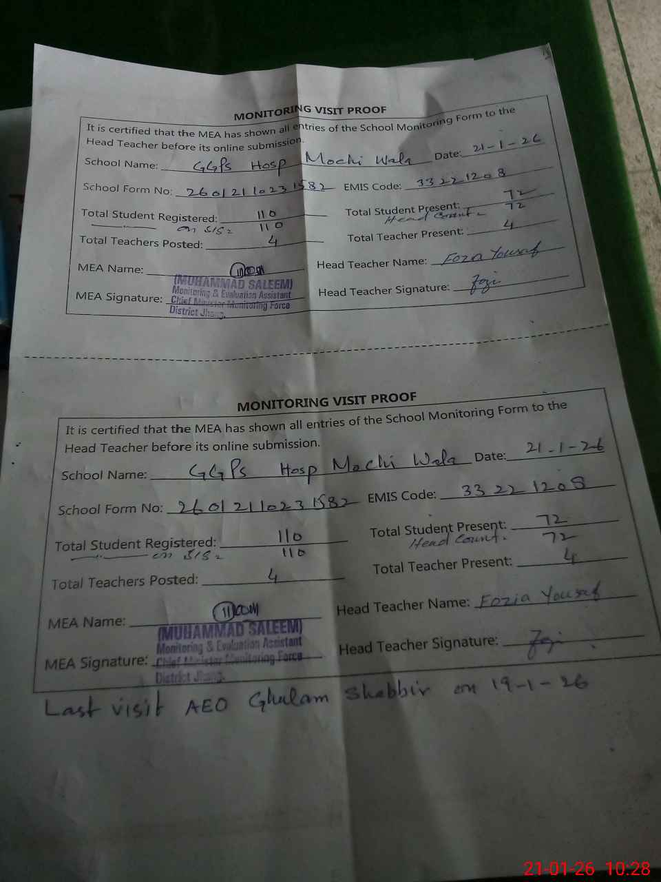 | EMIS Code: 33221208 | Name of School: GGPS HOSPITAL MOCHI WALA | |||