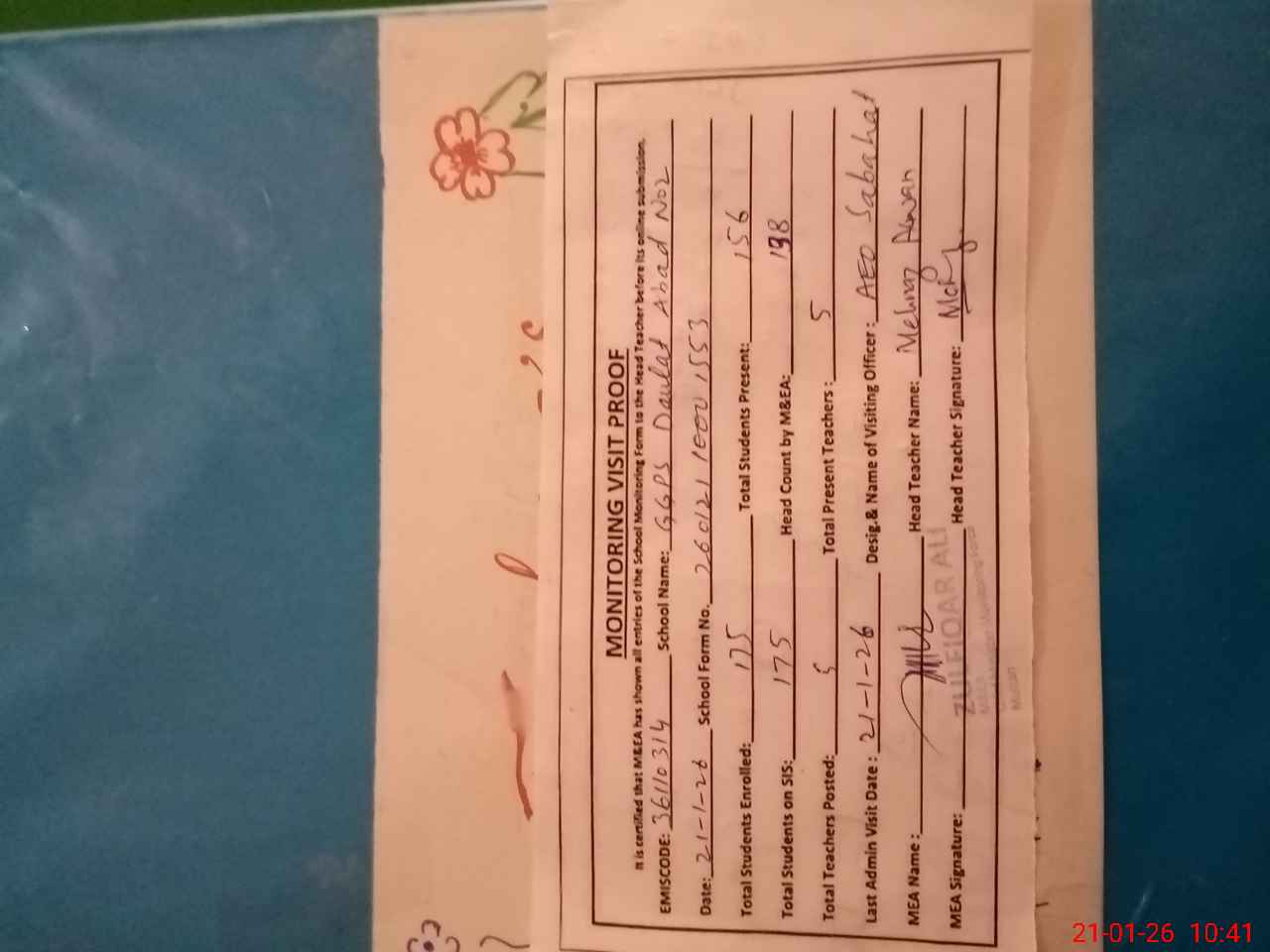 | Certified that this School was Inspected by the Undersigned MEA/DMO Today and the Information Stated Above is as Per Record. | |||||