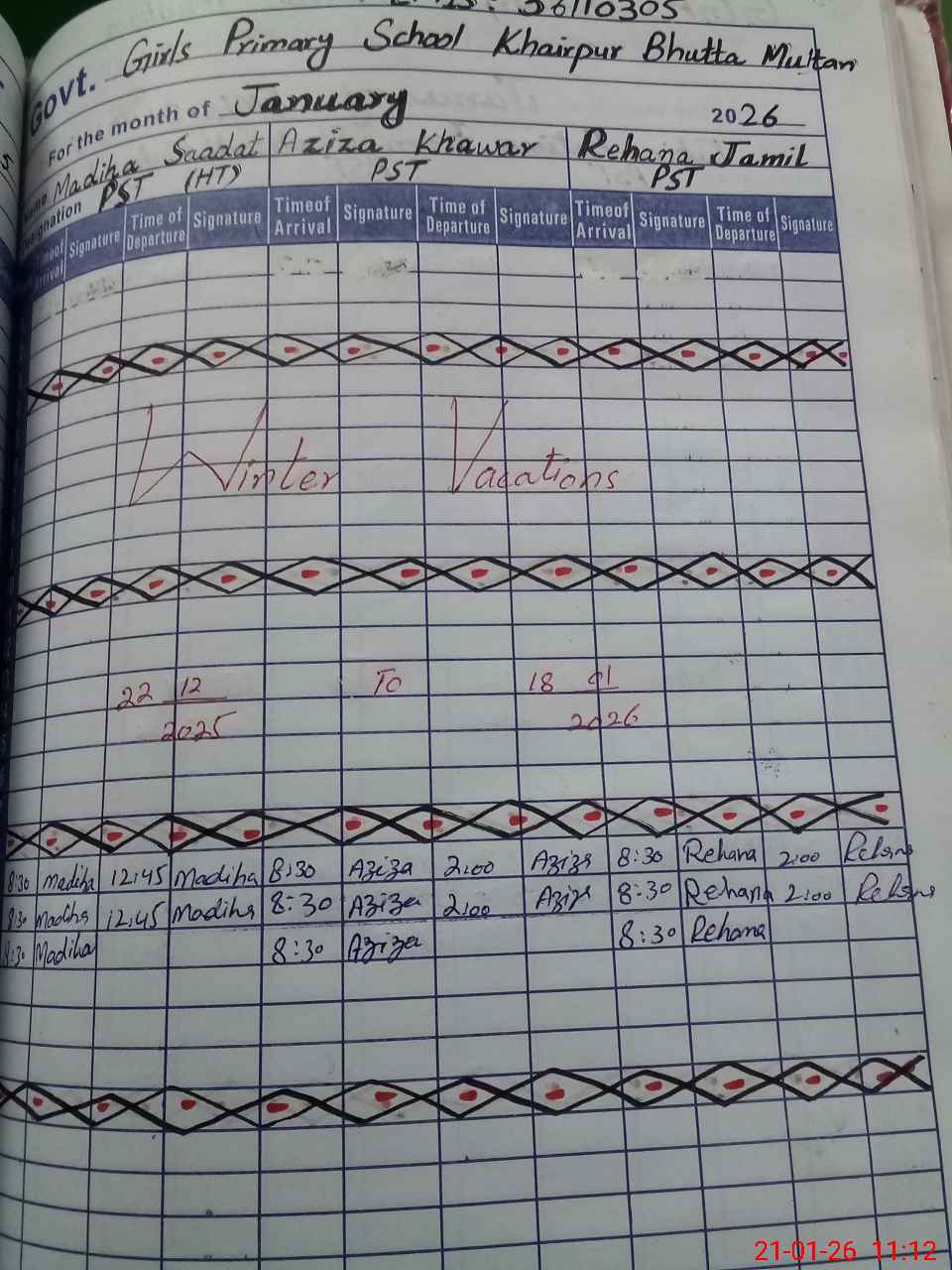 | Name: Ma**** Sa**** Designation: (School Headmaster's/Headmistress's) PST/PTC/JV Phone/Cell Number: 03**** |
