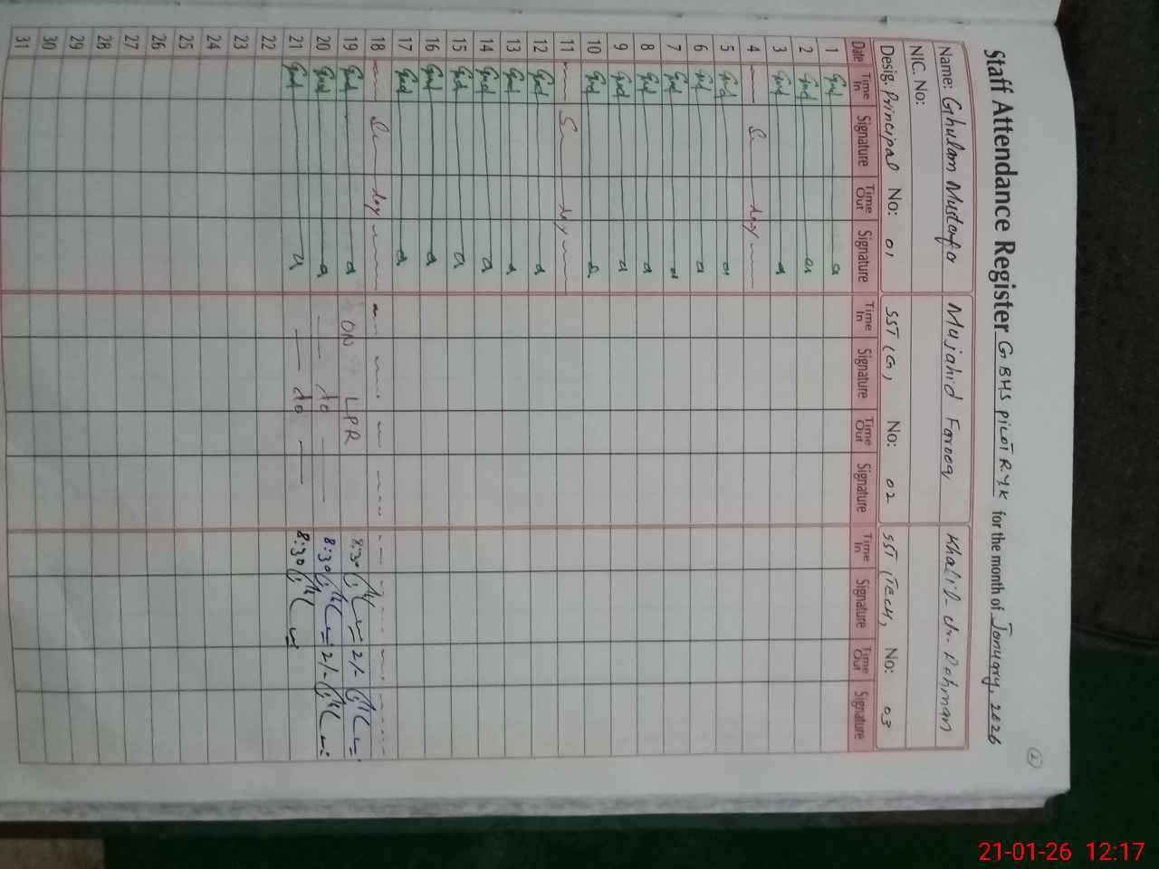 | Remarks (Use Separate Page if Required): 1 Mr Abid Hussain EST teacher on socio economic survey duty 2 Mr Nazir Ahmed PST teacher on socio economic survey duty | |||||