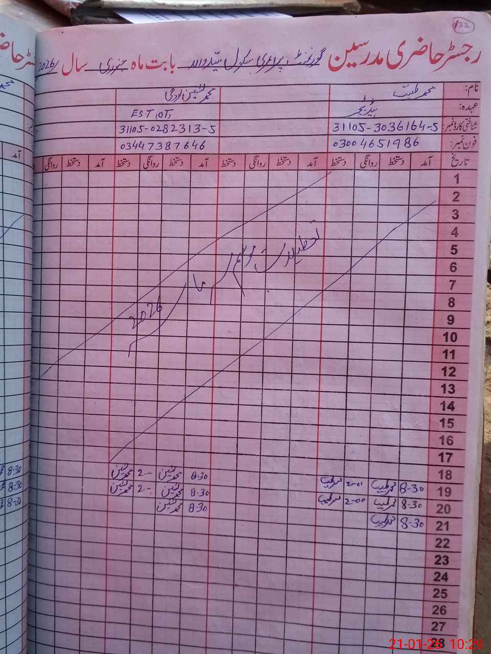 | Name: MU**** Ta**** Designation: (School Headmaster's/Headmistress's) P S T Phone/Cell Number: 03**** |