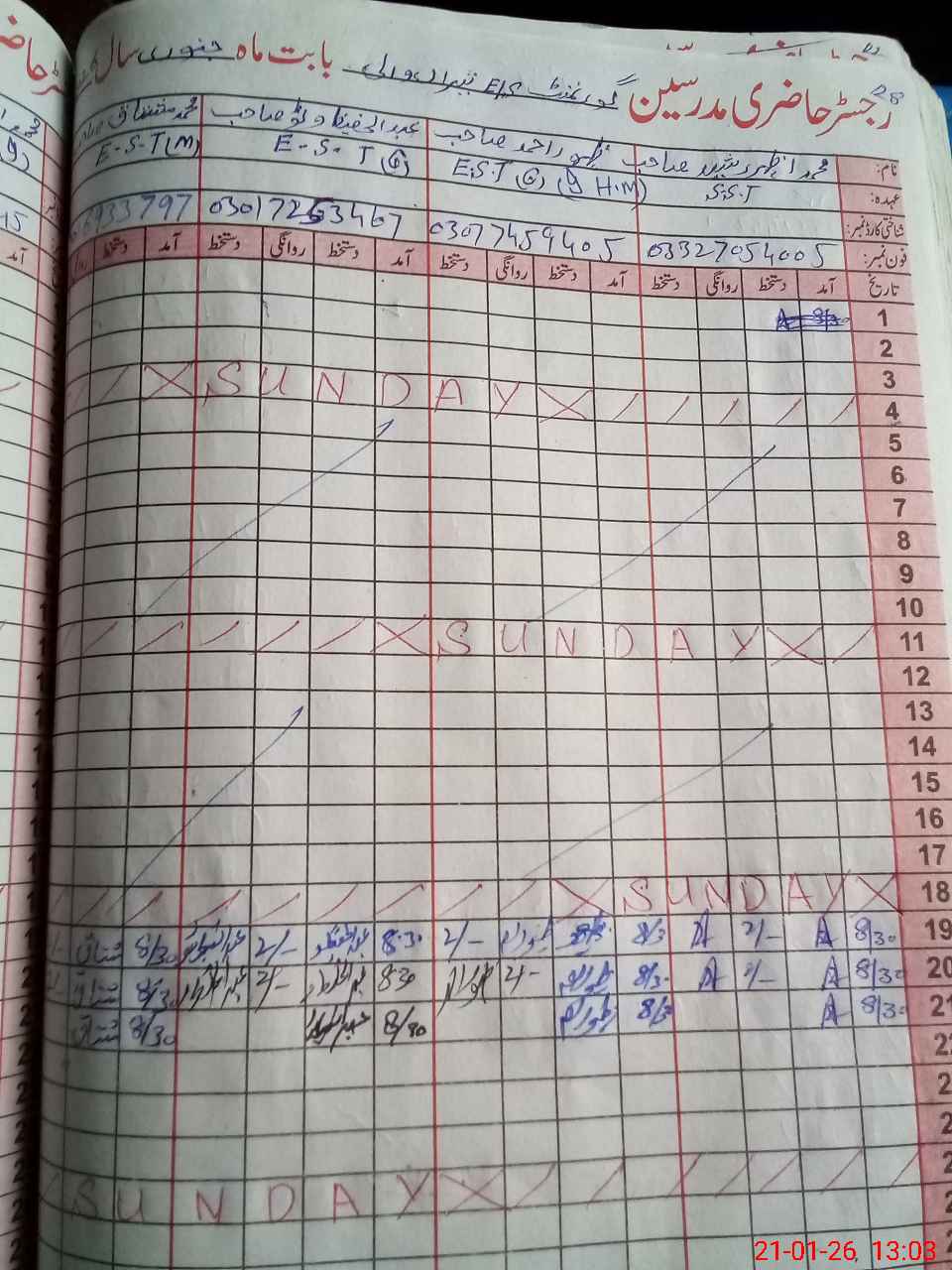 | Name: Za**** Ah**** Designation: (School Headmaster's/Headmistress's) EST Phone/Cell Number: 03**** |