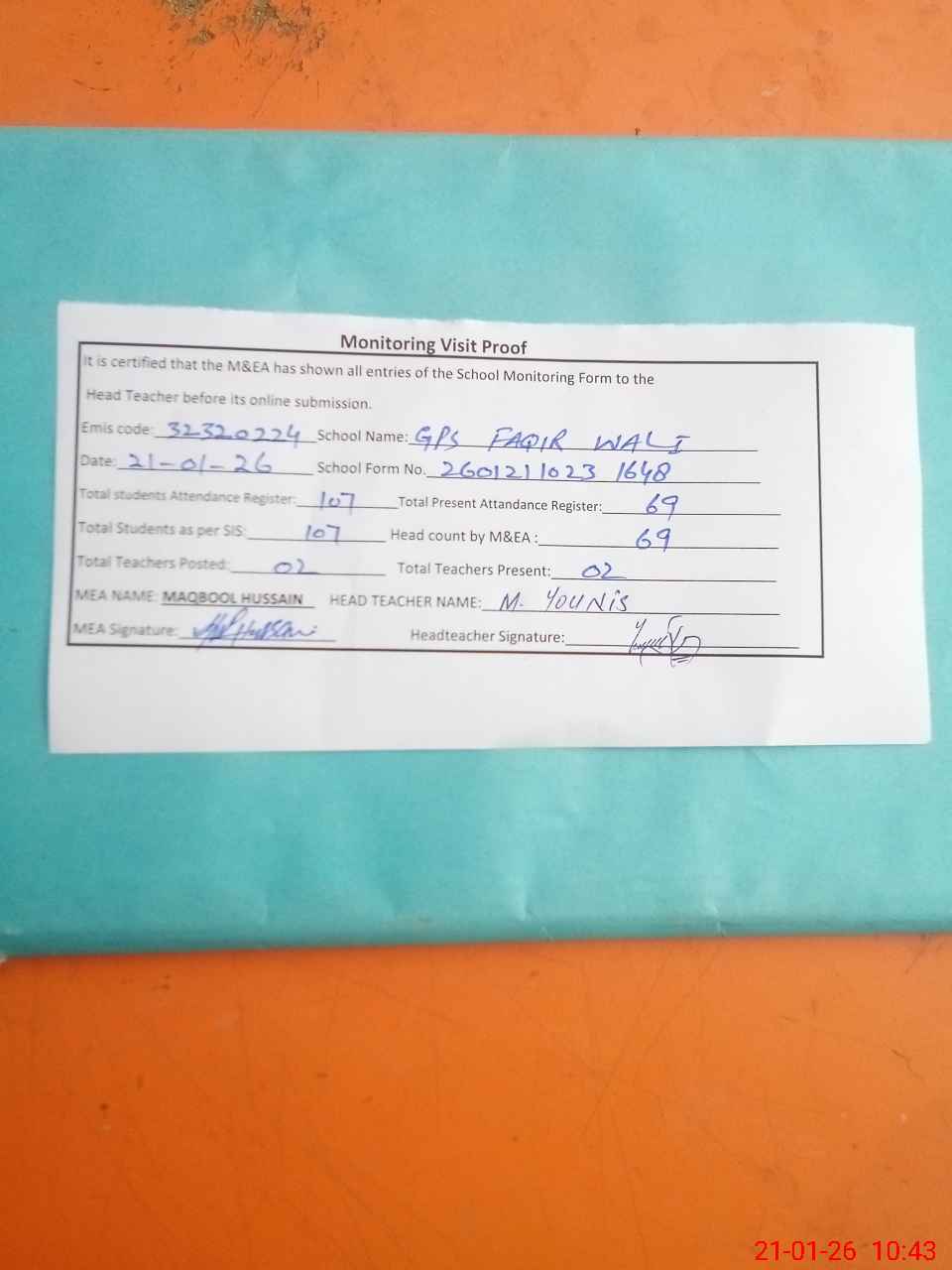 | EMIS Code: 32320224 | Name of School: GPS FAQIR WALI | |||