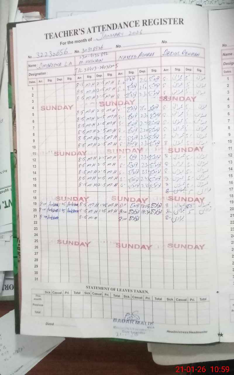 | Name: UZ**** YA**** Designation: (School Headmaster's/Headmistress's) PRINCIPAL Phone/Cell Number: 03**** |