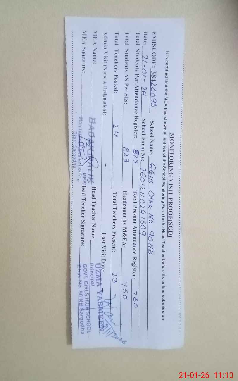 | EMIS Code: 38420095 | Name of School: GGHS CHAK NO.90 NB | |||