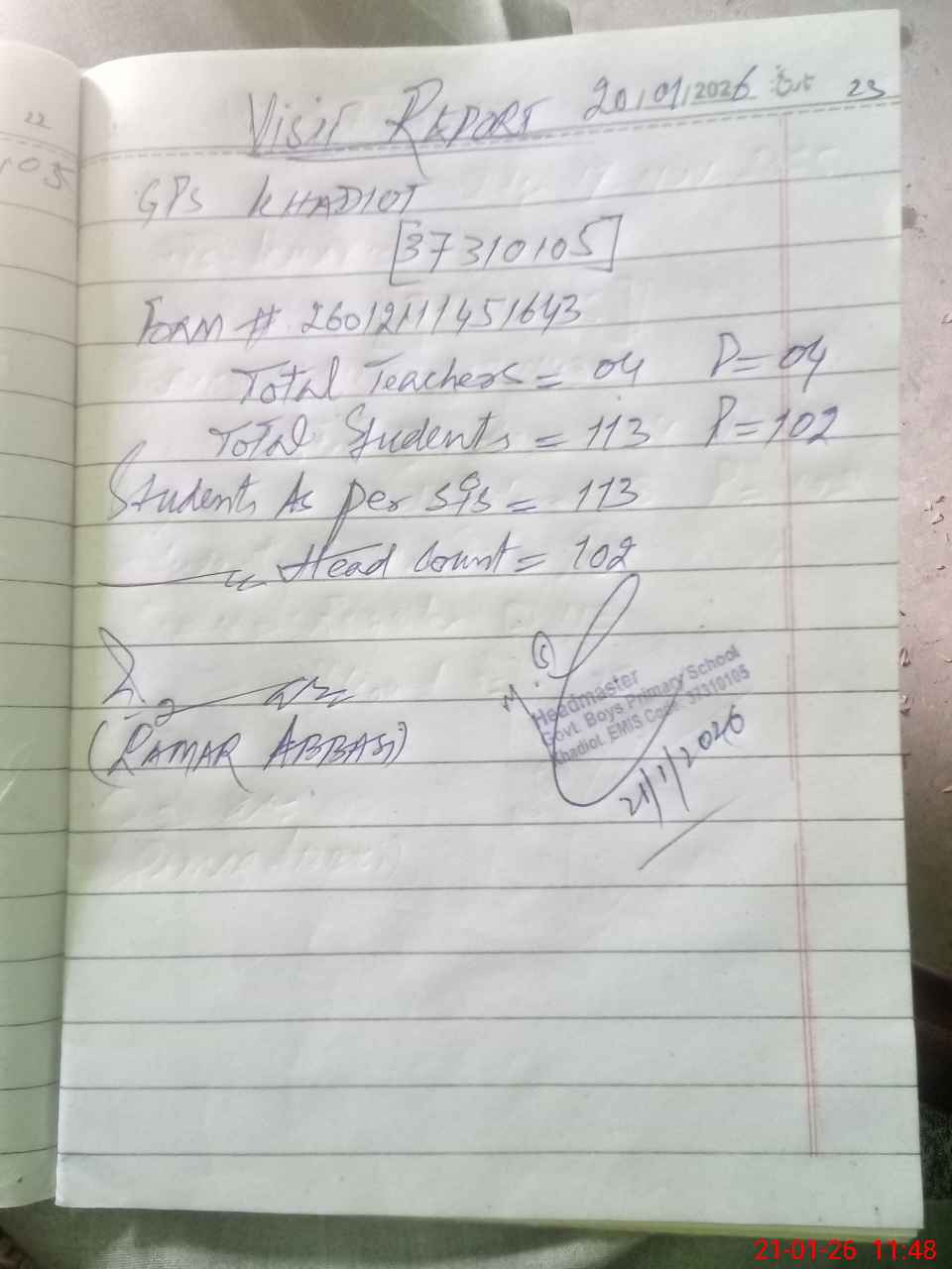 | EMIS Code: 37310105 | Name of School: GPS KHADIOT | |||