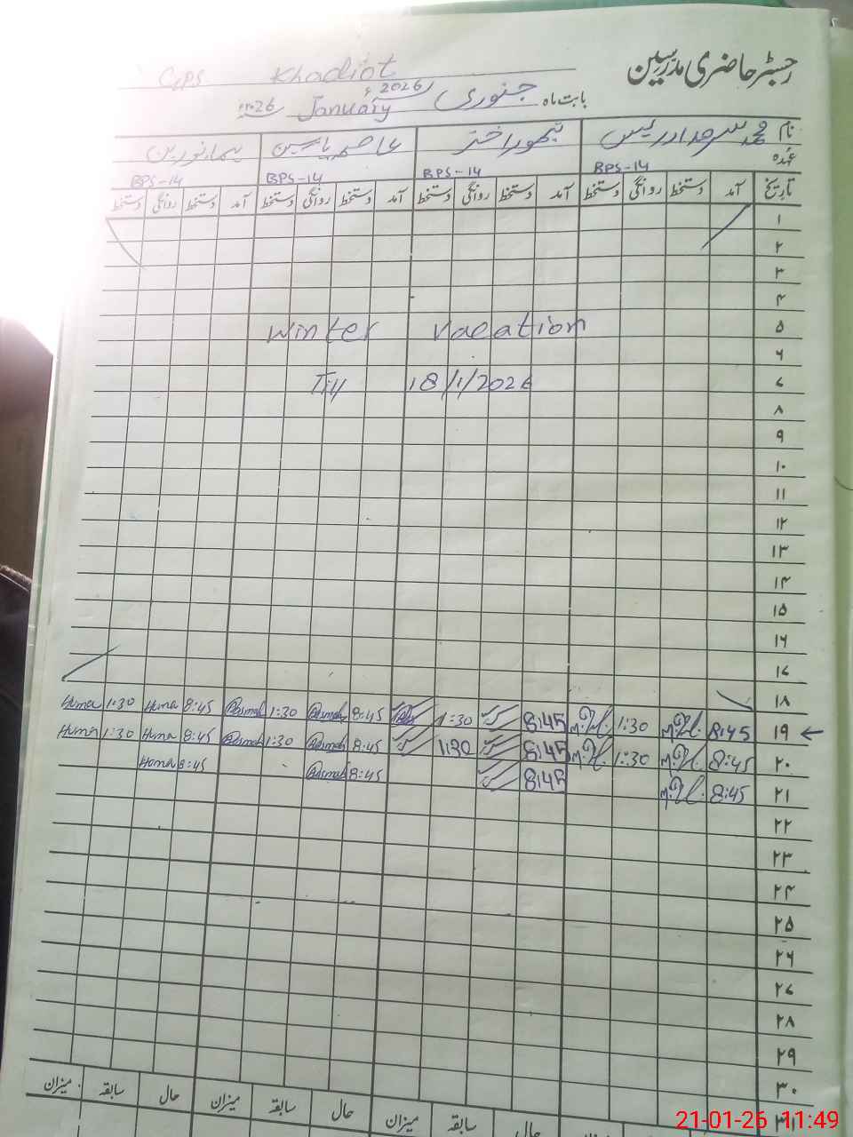 | CNIC | Full Name | Designation | R/C | Absence during last cal. month |