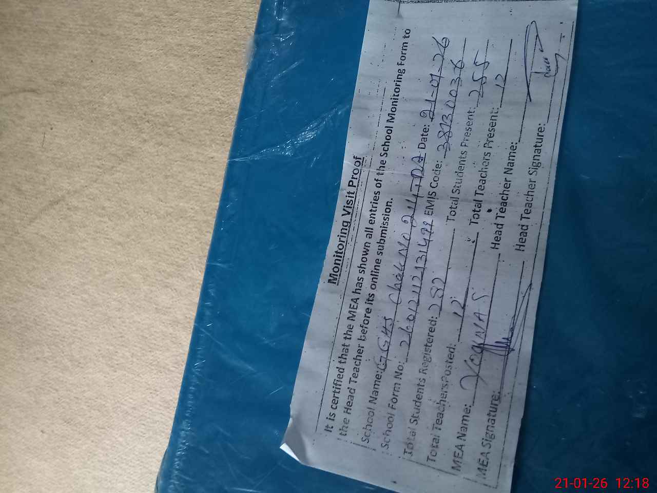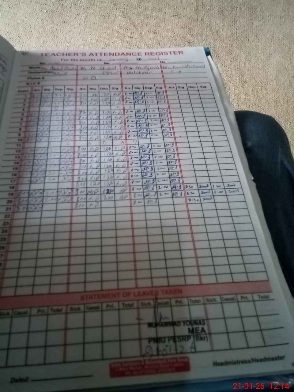 | Attendance Register | Head Teacher | MEA with School | Visit Proof |