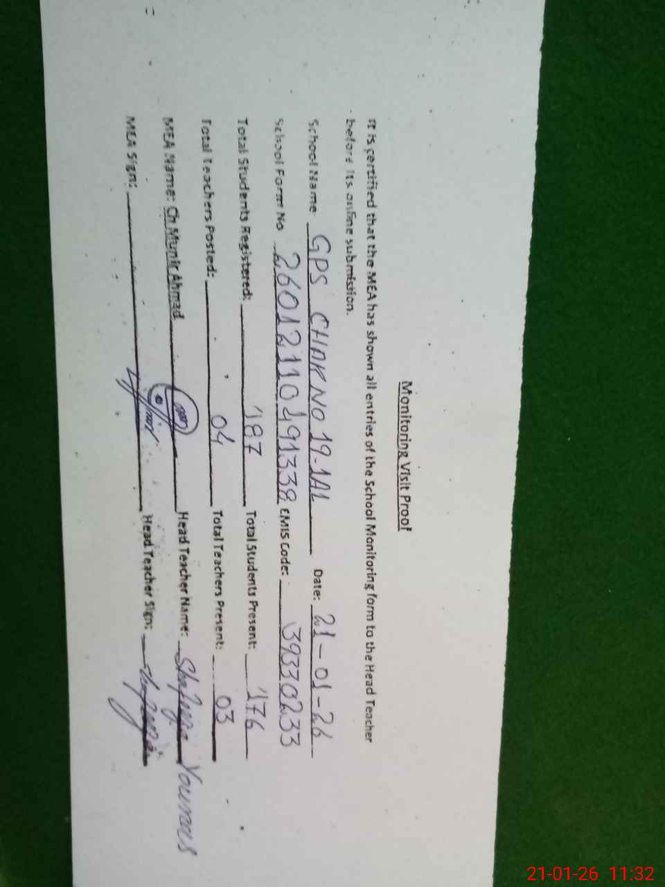 | EMIS Code: 39330233 | Name of School: GPS CHAK NO. 19/1-AL | |||